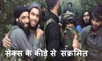 आतंकियों को इस तरीके की ट्रेनिंग दी जाती है कि उनका दिमाग आतंकी साजिश के अलावा कुछ और सोच न पाए लेकिन ट्रेनिंग के दौरान उनको चटखारे ले ले कर हूरों और लौडों के बारे में बताया जाता है जिस से उनको अपना अंतिम मिशन सिर्फ सेक्स पूर्ती ही लगने लगता है और उनका पूरा फोकस कथित जिहाद पर रहने की बजाये हूरों और लौंडों के जिसम की कल्पना करने में ही लगा रहता है . बीते डेढ़ साल में कश्मीर घाटी में जिन आतंकवादियों को सुरक्षाबलों ने ढेर किया और जो अभी भी सक्रिय हैं, उनके बारे में खुफिया जानकारी कुछ ऐसा ही बताती है । कश्मीर में सक्रिय आतंकी स्थानीय हो या पाकिस्तान से आए विदेशी, इनमें से ज्यादातर सेक्स , अय्याशी, बलात्कारों और प्रेम संबंधों में शामिल हैं।